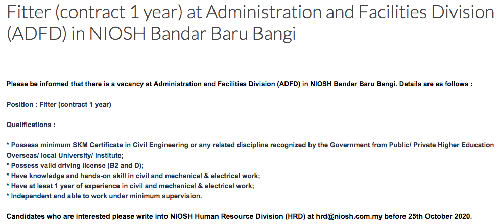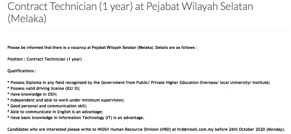 INSTITUT KESELAMATAN & KESIHATAN PEKERJAAN NEGARA (NIOSH) 984 views