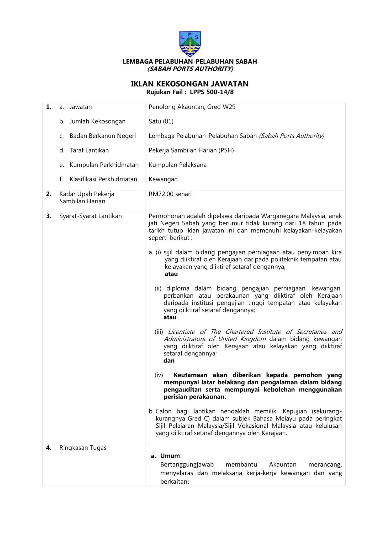 Full-time Sabah November 12, 2020 Sektor Awam