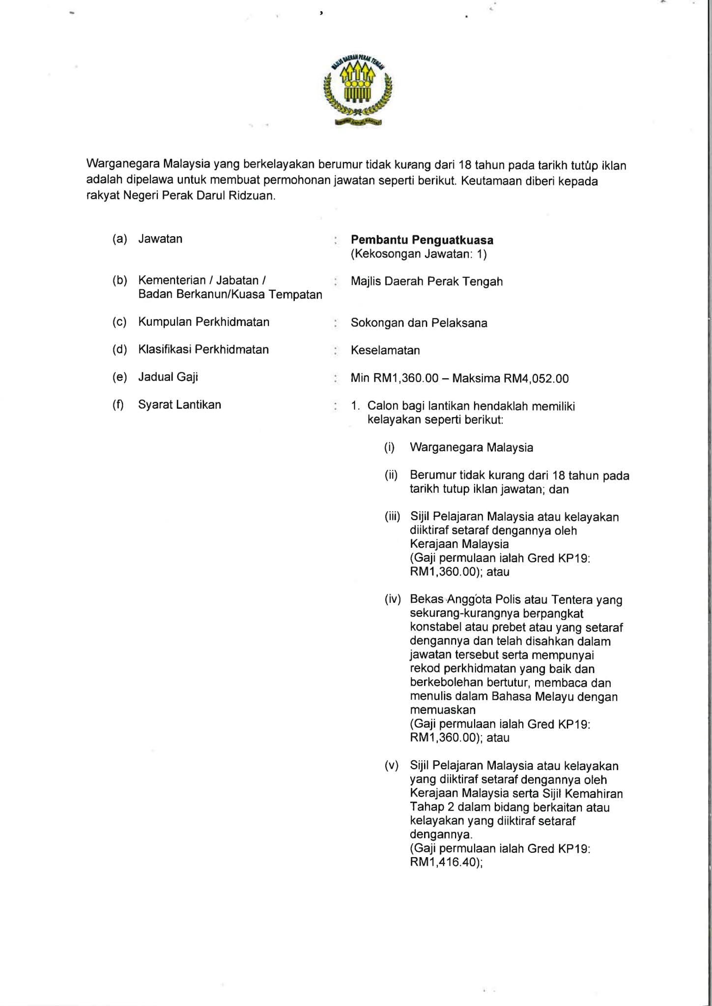 Full-time Perak December 6, 2021 Sektor Awam