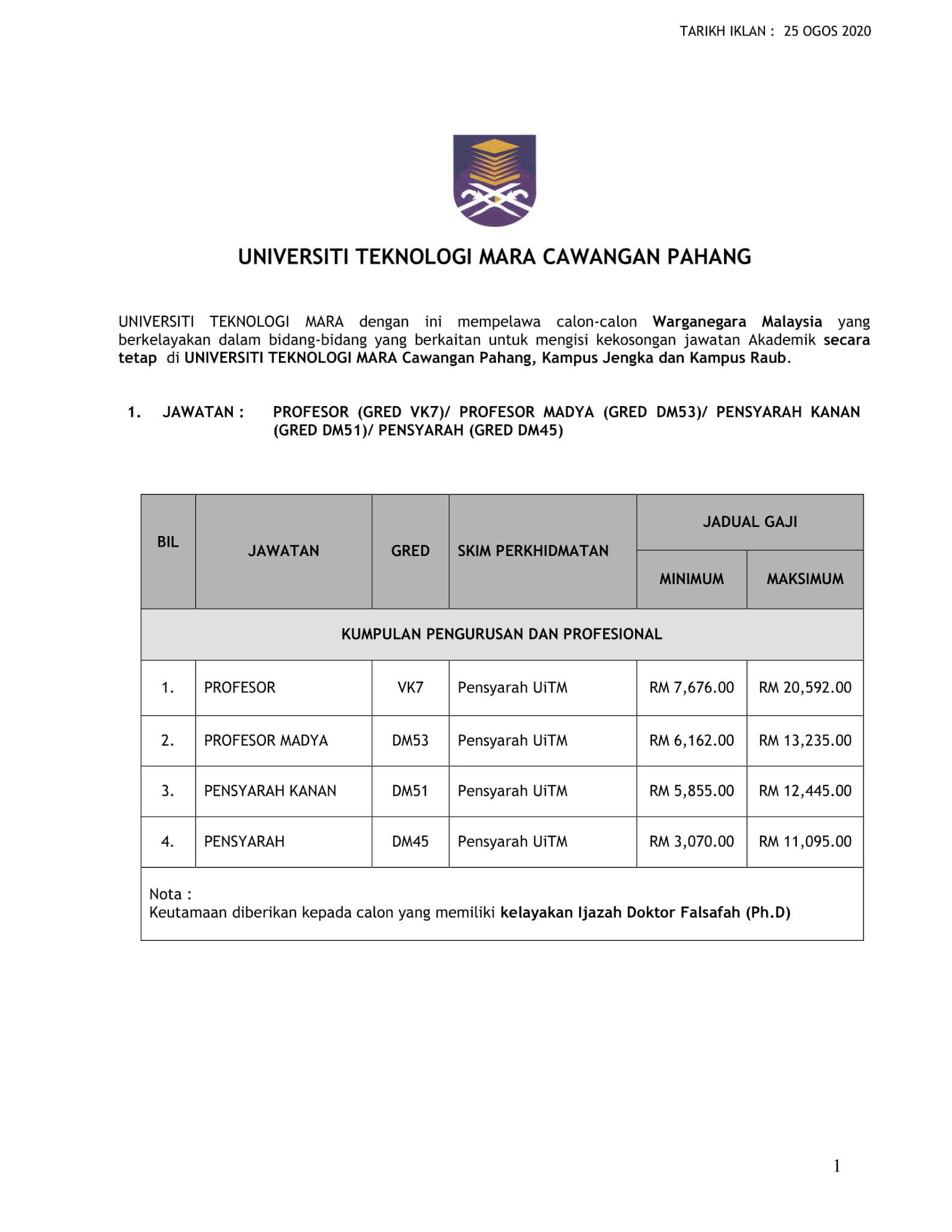 UNIVERSITI TEKNOLOGI MARA (UITM) PAHANG 1197 views